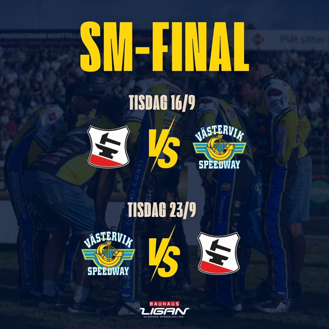 Det är nu det gäller. Efter en hel säsongs kamp, svett och hjärta står vi äntligen där vi alla drömt om – Västervik Speedway i SM-final mot Eskilstuna Smederna!