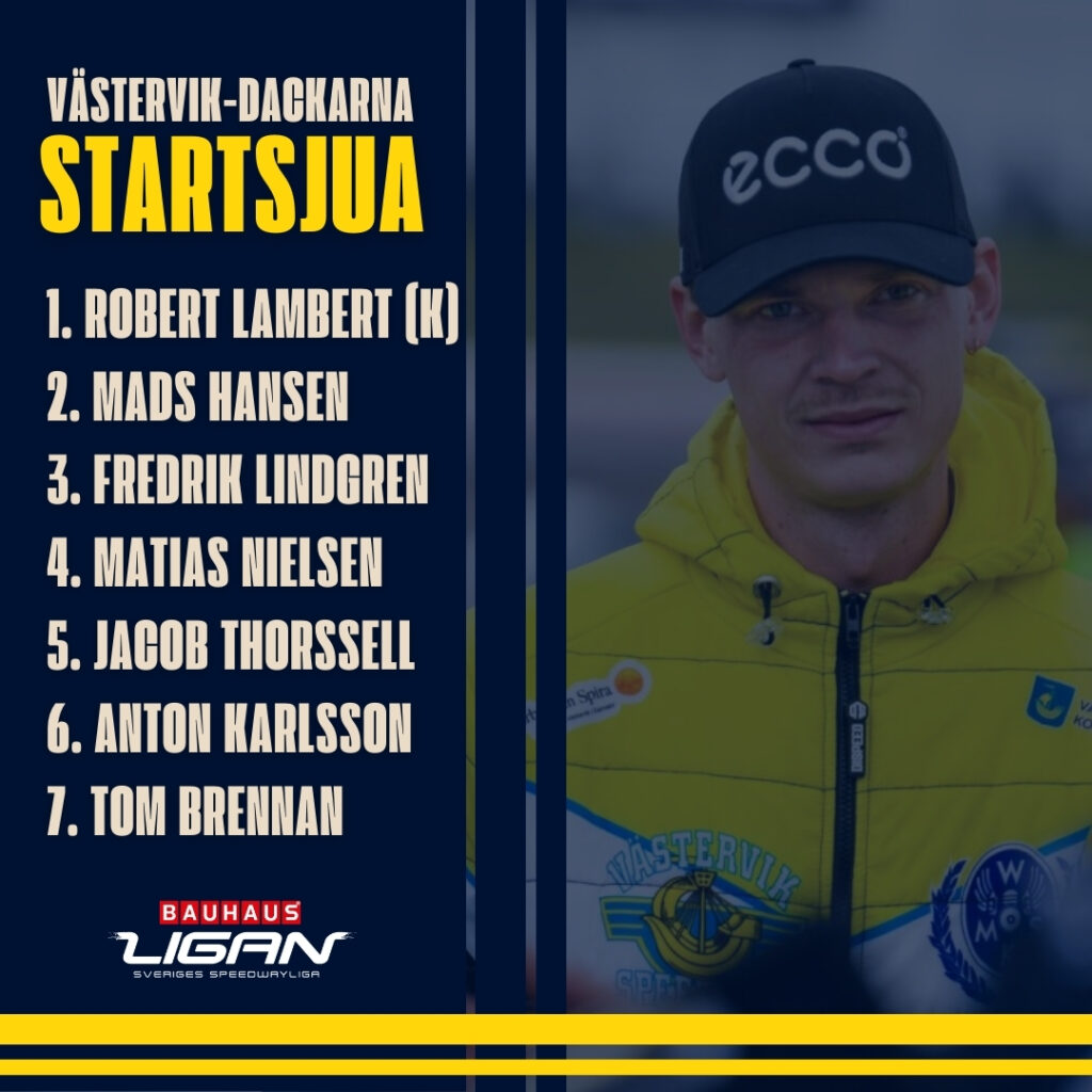 Västervik besökte Skrofrag Arena i Målilla för möte med Dackarna i den första kvartsfinalen. Slutresultatet skrevs till 46-44 i favör för Västervik. Kvällen inleddes med 3-3 i heat 1 där Lambert kunde trycka sig förbi Lahti ut ur första sväng och få med sig Brennan. Zengota gick inte att stoppa…